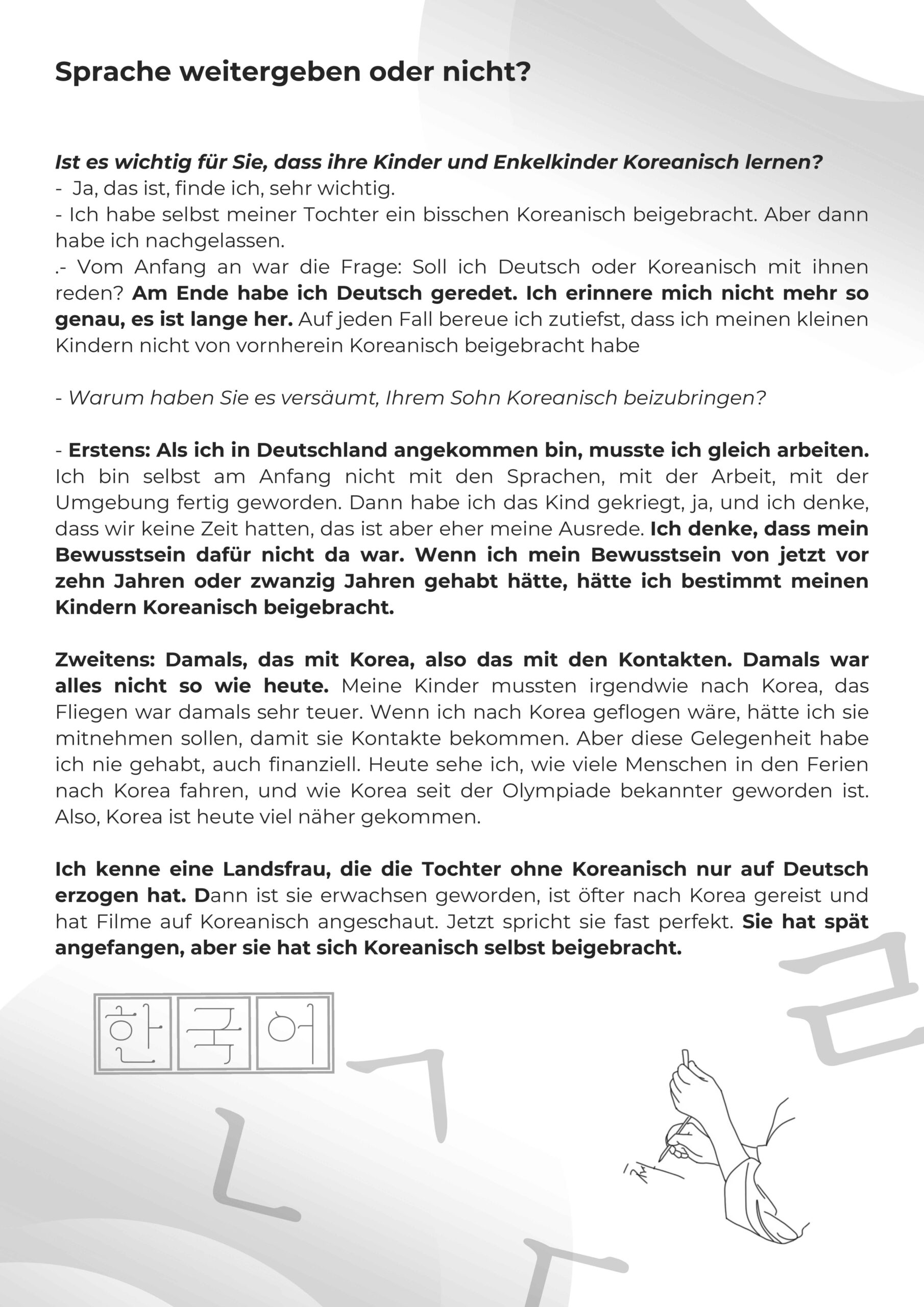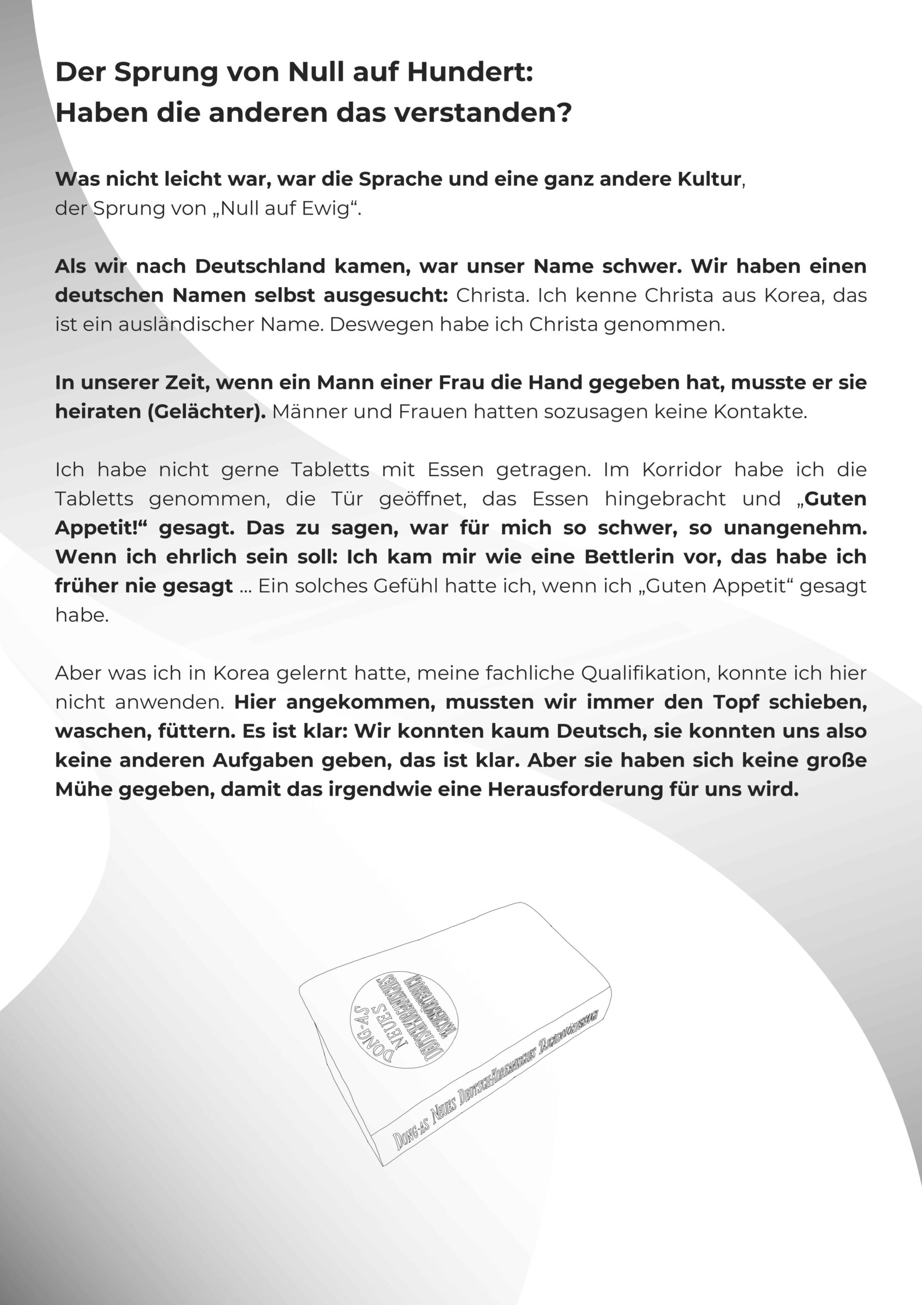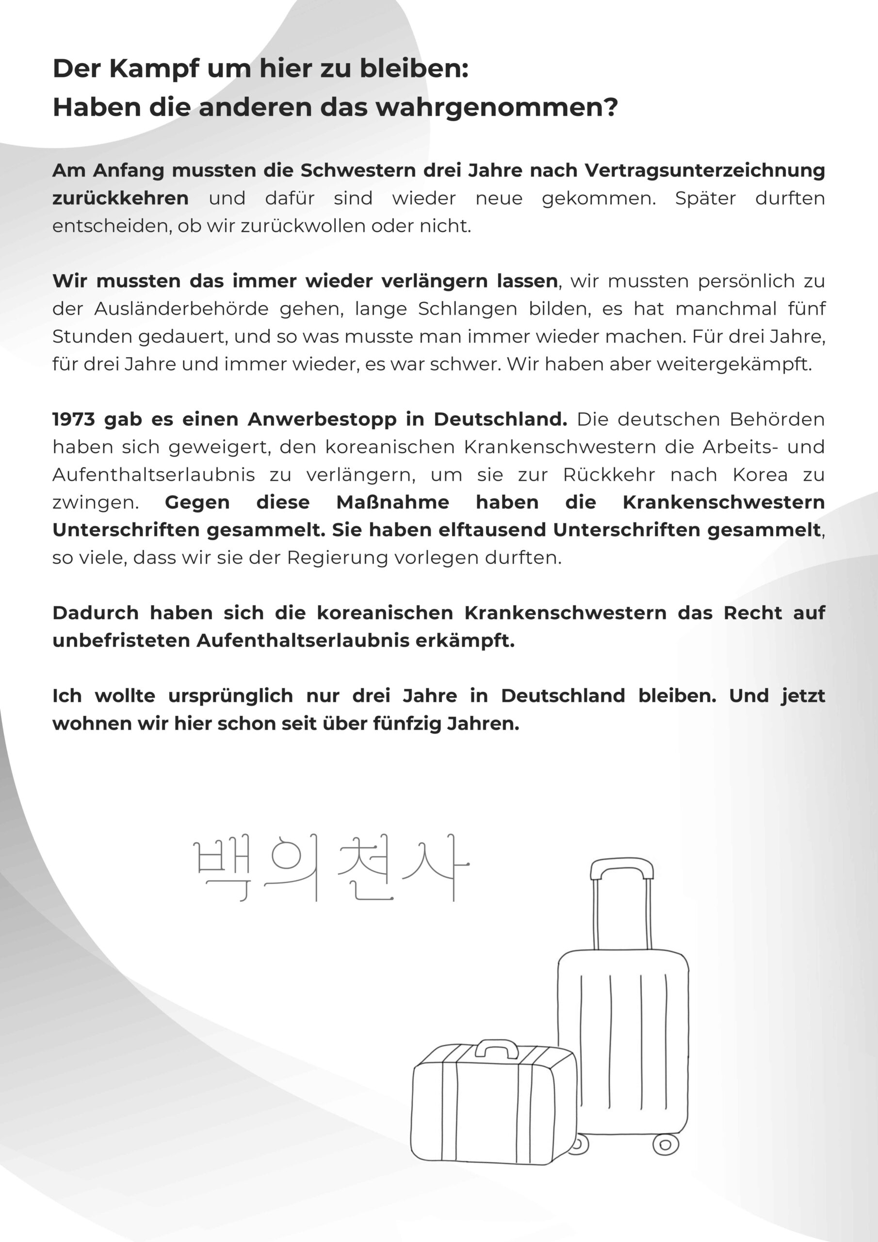 Die Broschüre ist ein kleines lebendiges Denkmal für die koreanischen Krankenschwestern, die zwischen 1966 und 1977 aus Südkorea nach Deutschland gekommen sind.