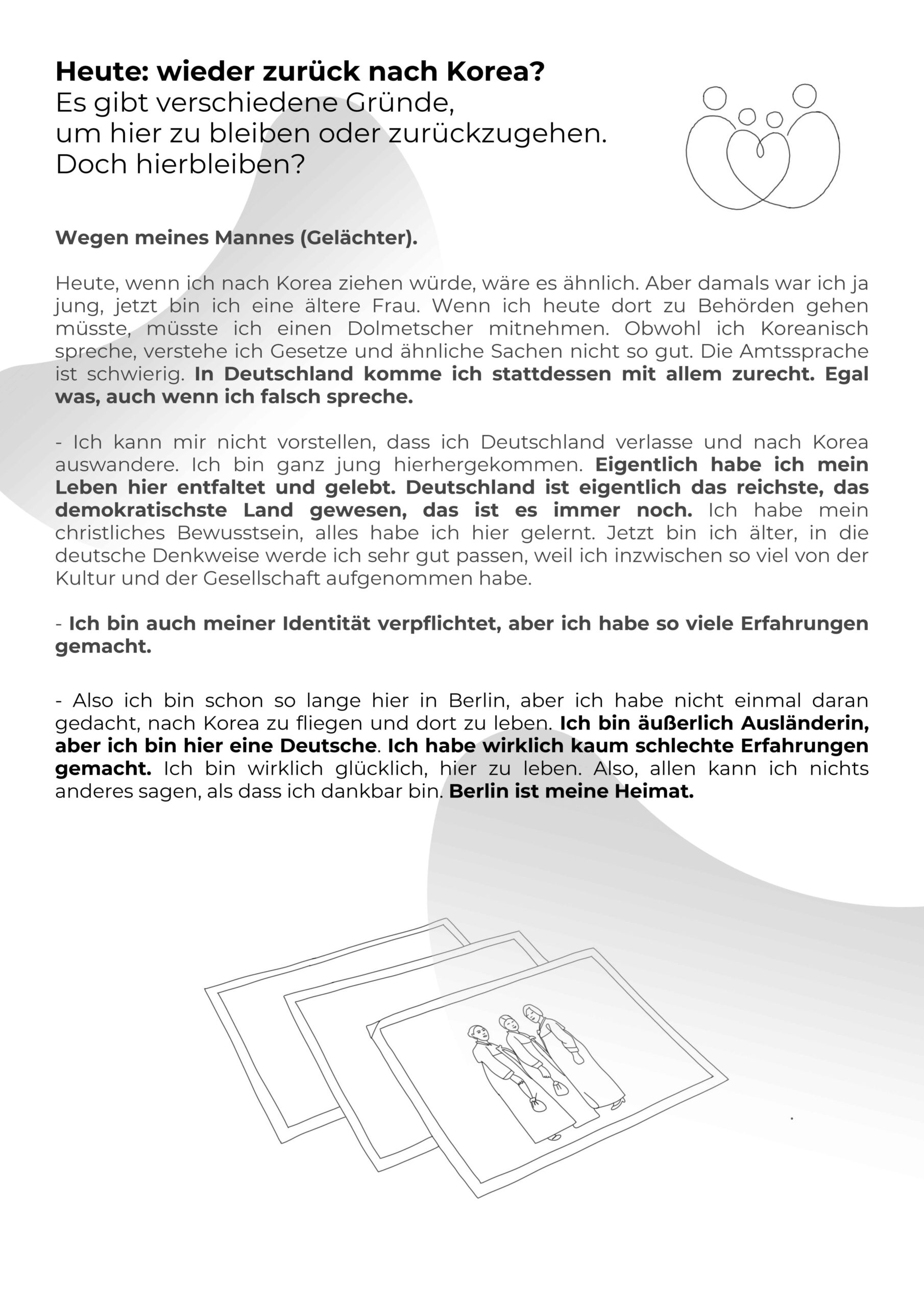 2025 haben vier Erzählcafés mit Mitgliedern des Vereins der (ehemaligen) koreanischen Krankenschwestern im interkulturellen Haus stattgefunden. Daraus ist eine kollektive Erzählung entstanden.